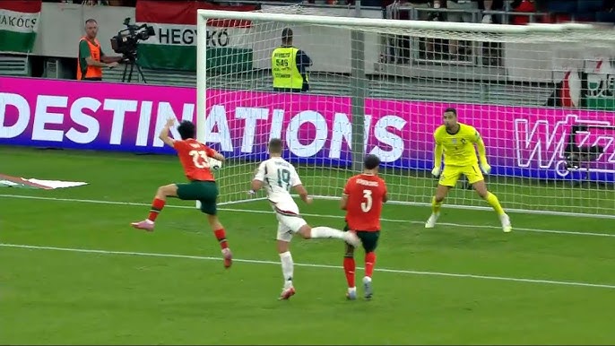 AND THEN IT WAS BACK OVER TO HUNGARY’S BARNABAS VARGA TO EQUALISE AT 84 MINS., WITH THE SECOND GOAL OF HIS BRACE! (BELOW)